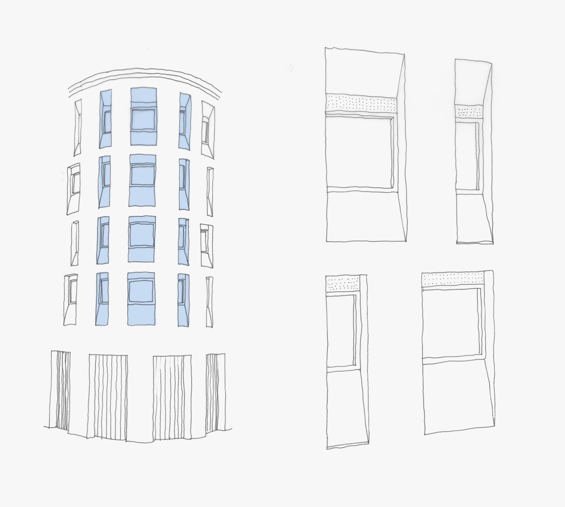 Sculpted windows in alternate patterns draw light into the student suites, situated around the perimeter of the building, and animate the façade. The accommodation also features an outdoor terrace and double height internal communal spaces.