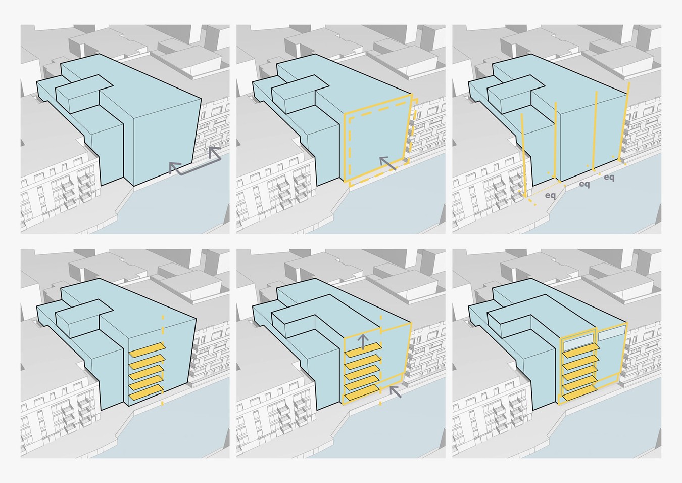 The site is currently occupied by a cluster of disparate buildings of varying heights which look out of place amongst the collage of residential, commercial and light industrial buildings completed over the past decade. The existing buildings will be demolished and replaced by a single building occupying the whole site. The new building is composed as a series of three vertically proportioned elements, which break the massing and provide a complementary rhythm to neighbouring buildings.