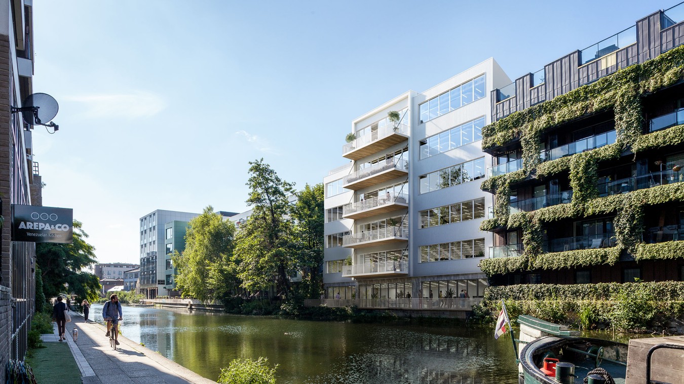 A flexible use space at ground floor can be used as a café, providing access and views to the canal and a canalside terrace that runs the length of the building.