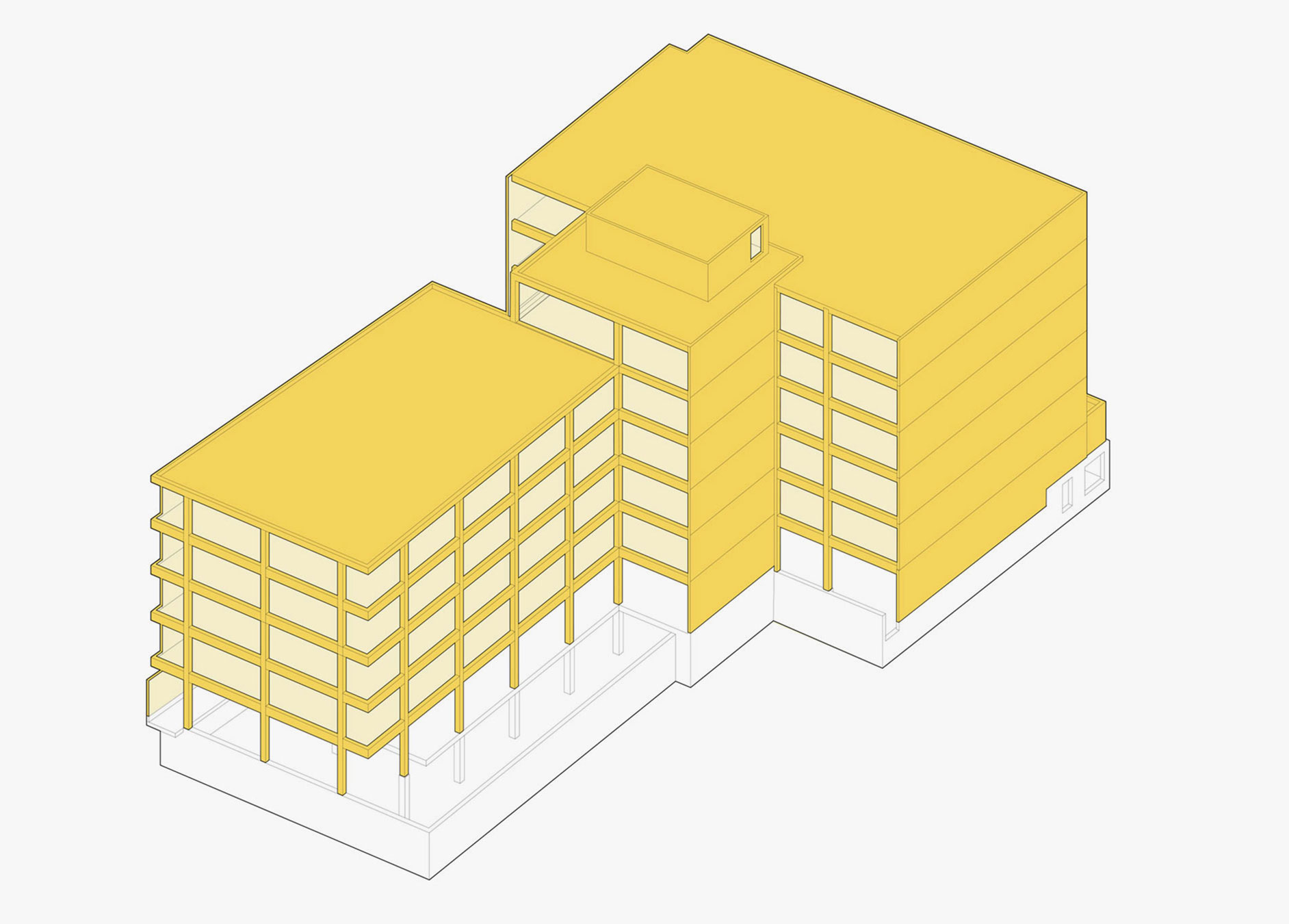 The simplicity of this fully engineered timber office building belies its groundbreaking innovation. Setting a powerful sustainable agenda with only 410 kgCO2e/m2 embodied carbon (A1-A5), material use has been optimised. Each component is designed to be as efficient as possible, resulting in an honest design without excess.