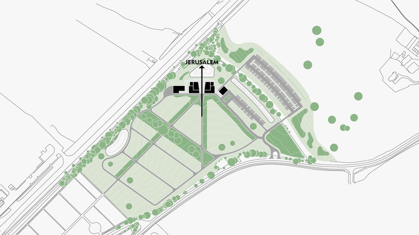 The process of the Jewish funeral defined the design for the extended site; we carefully landscaped each point in the processional ceremony to provide contemplative settings and views, harnessing the site’s established trees as key pivot points.