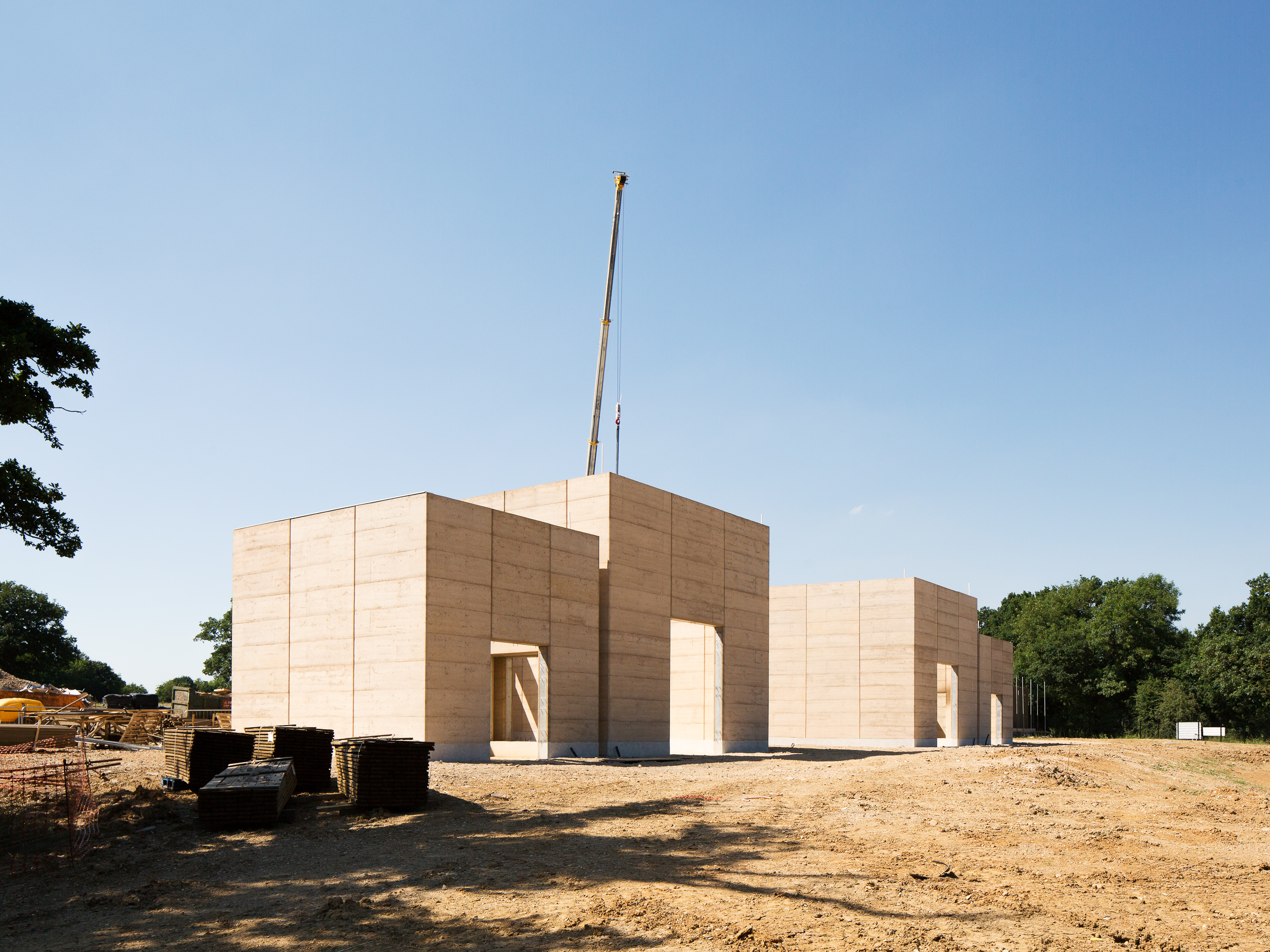 Connected by a cloistered timber colonnade, the earthen prayer halls are lined in English Oak, with sections of the rammed earth left exposed in the ceremonial spaces. Corten steel doors complement the natural material palette, and the calm internal environments are accentuated with subtle, low lighting.