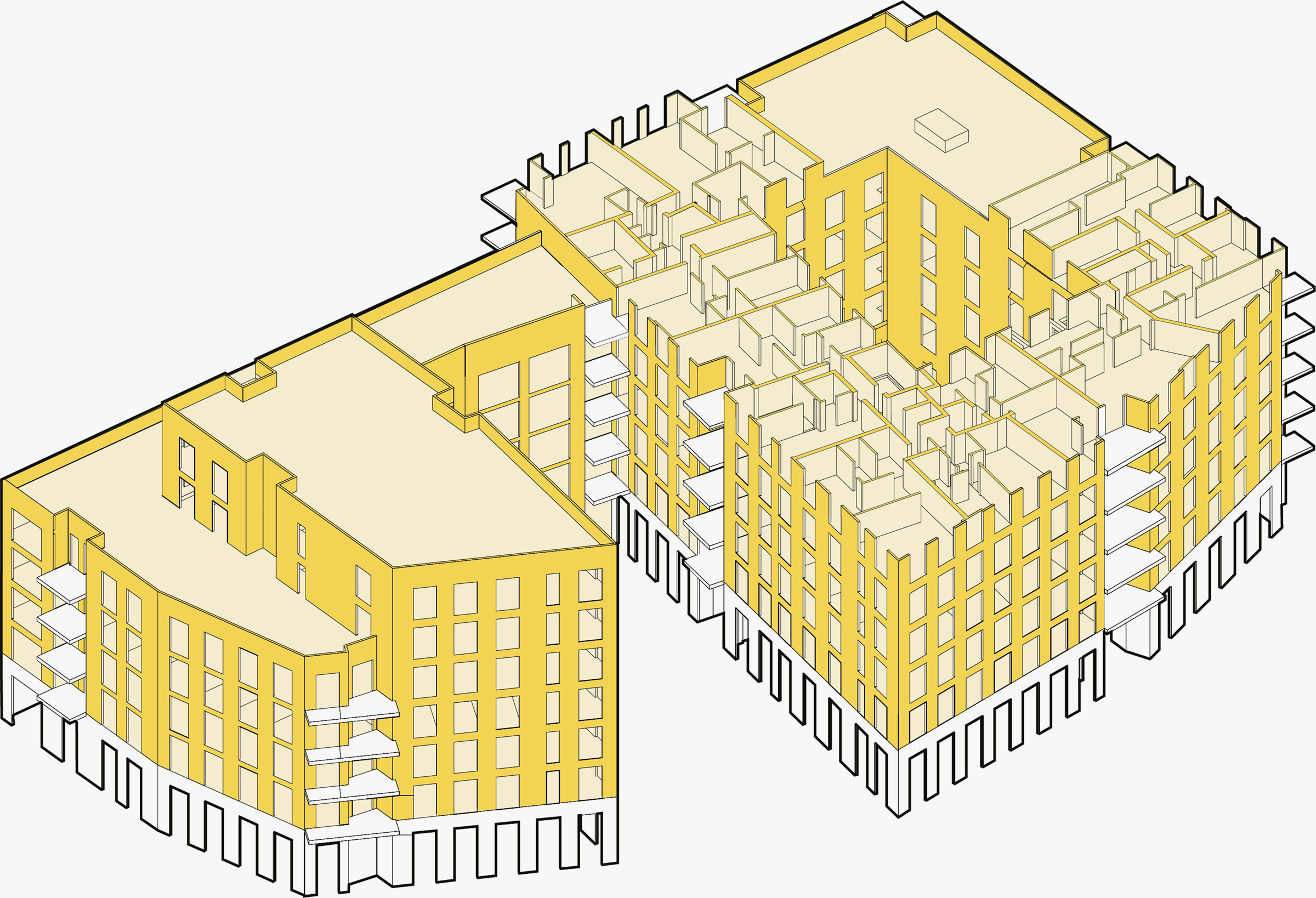 Due to its vastly reduced weight, the building is taller than was ever thought feasible on the neglected brownfield site.