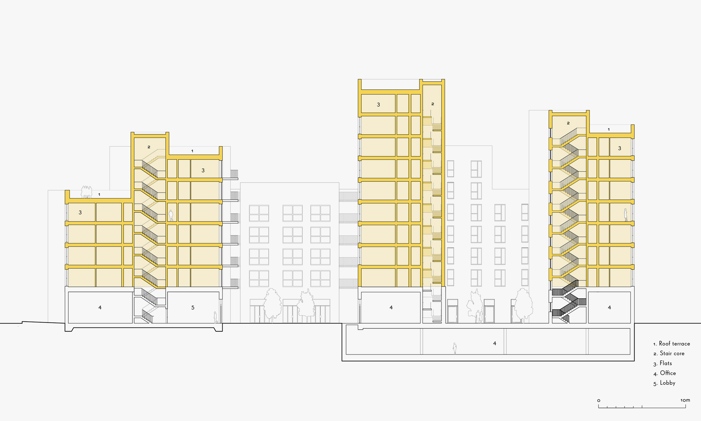 The building’s intricate brickwork references both the surrounding Victorian and Edwardian housing and the craftsmanship-like detailing of the local warehouses.