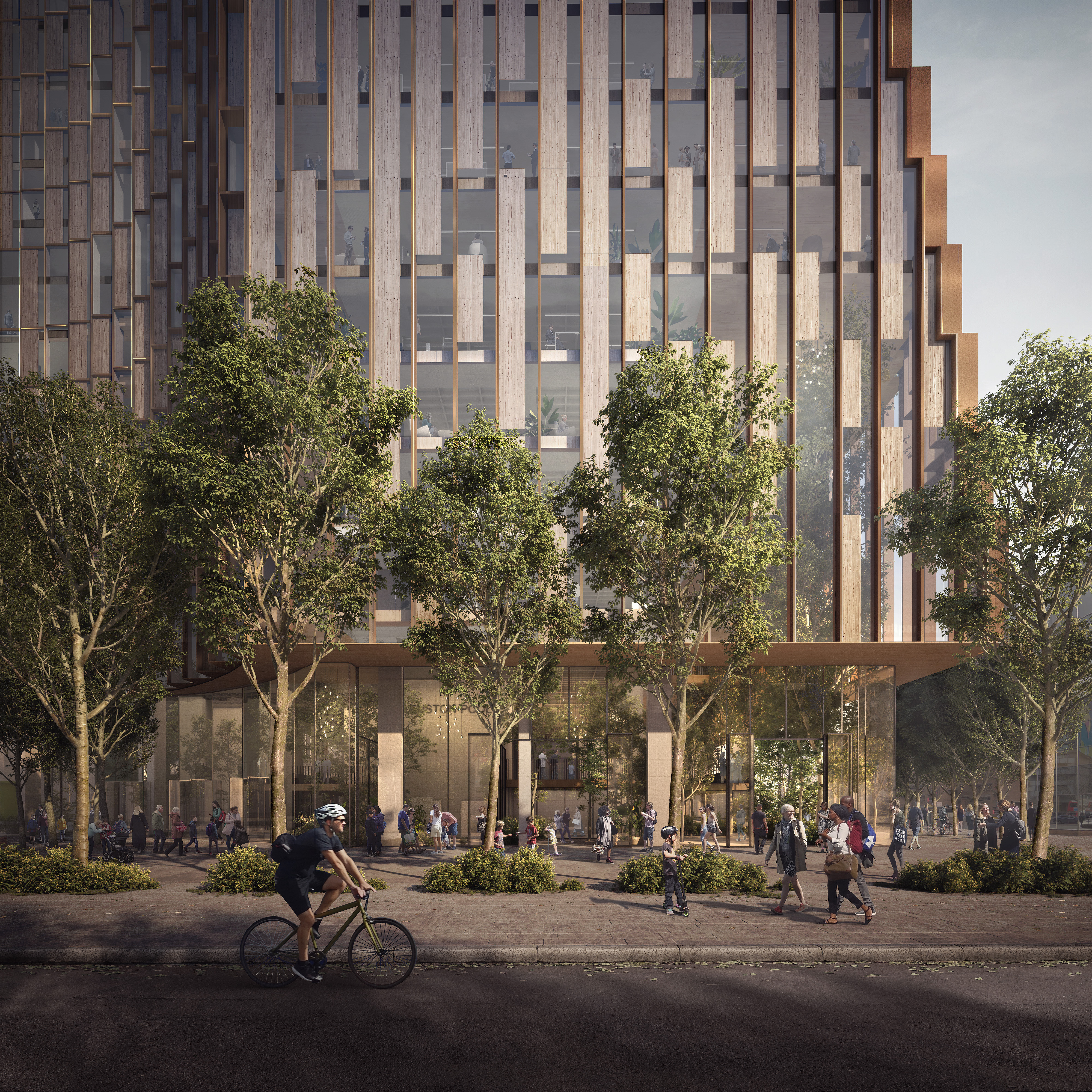The proposal challenges the concept of future office space with human experience and engagement at its centre. As well as enhanced daylight and views out, the building will provide an ecosystem of spaces, amenity and break-out, that will encourage moments of connection, bustle and reflection. Nature will be at the centre of the building, manifested through the timber structure and large green spaces. Double height spaces are created at two opposing corners of the floorplate to establish wintergardens. These spaces offer the opportunity to introduce staircases to connect tenancies vertically, increasing flexibility. Dramatically improving the daylight conditions, the wintergardens will transform the overall quality of the floors by offering break-out spaces with a connection to nature.