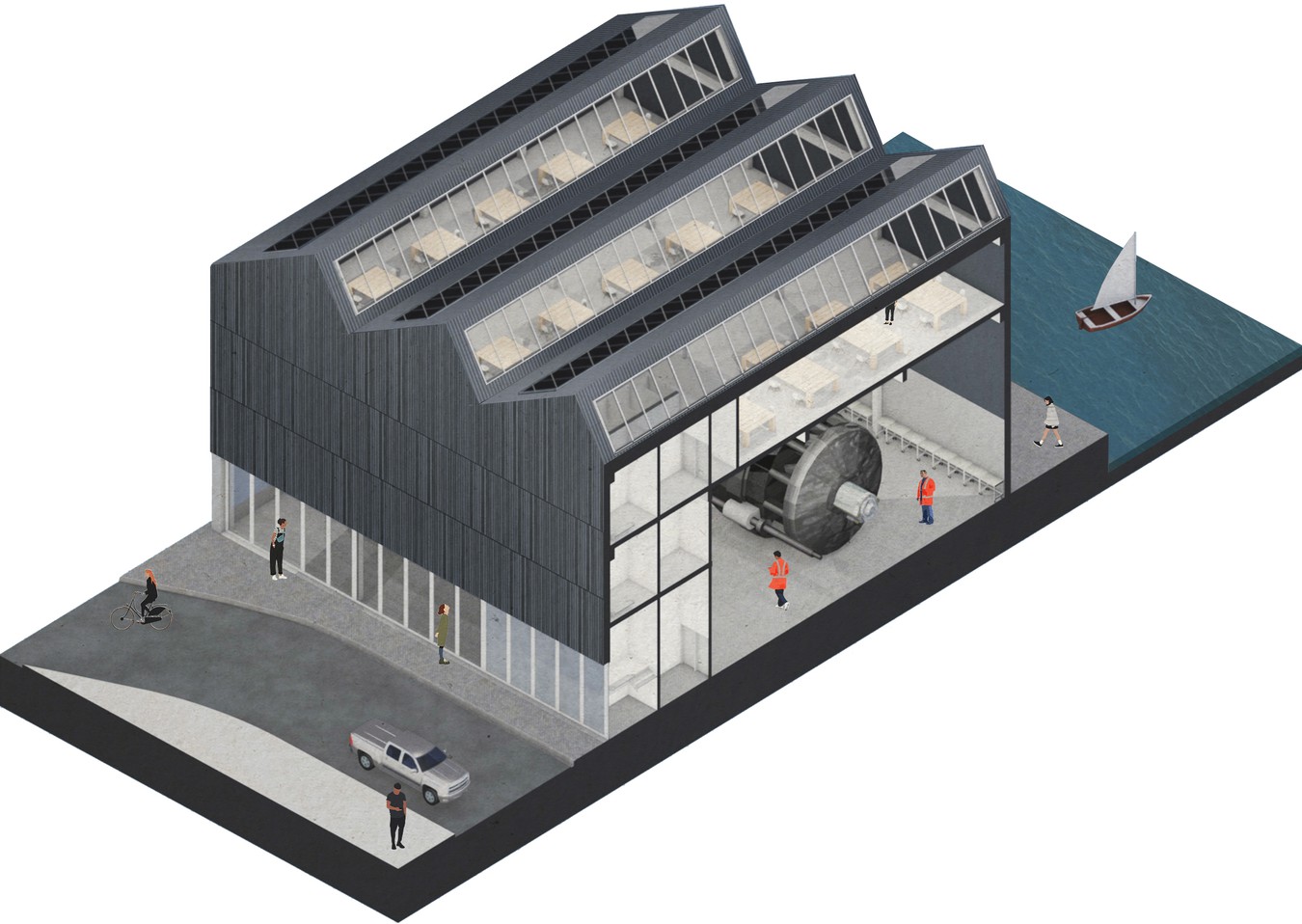 The series of projects represent an opportunity to reimagine the whole fish dock area, including one of Europe’s most threatened industrial heritage buildings. The aim is to reinstate public access to the dockside lost for the best part of a generation to the local community whose grandparents still remember the port and fish docks as the centre of international trade and their daily place of work, essential to the prosperity of their town.