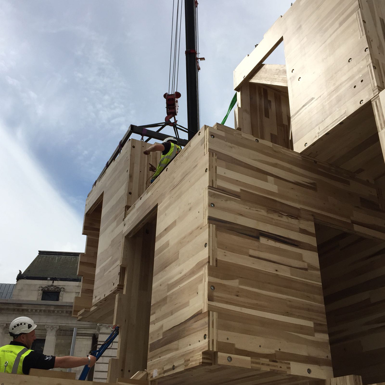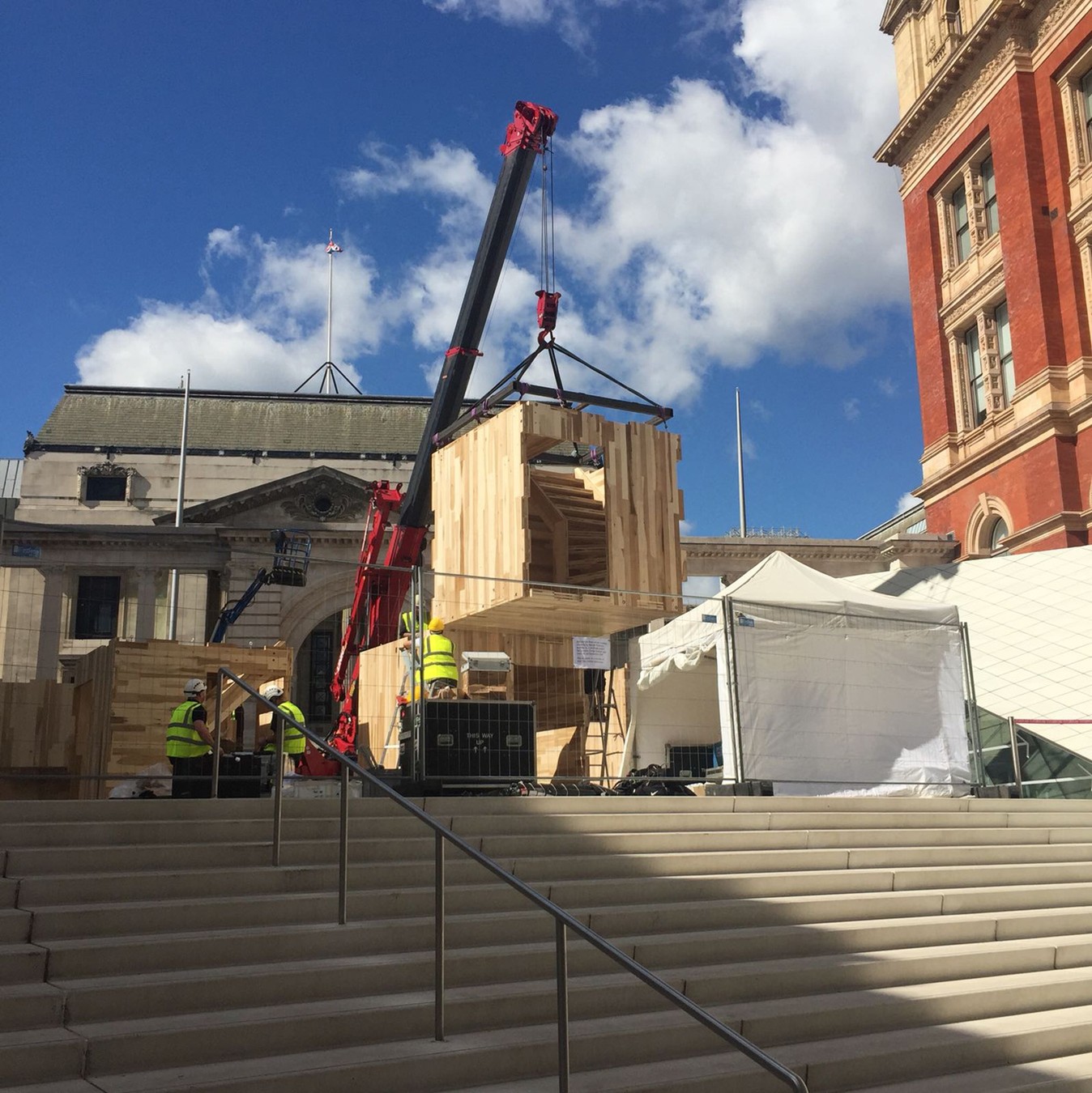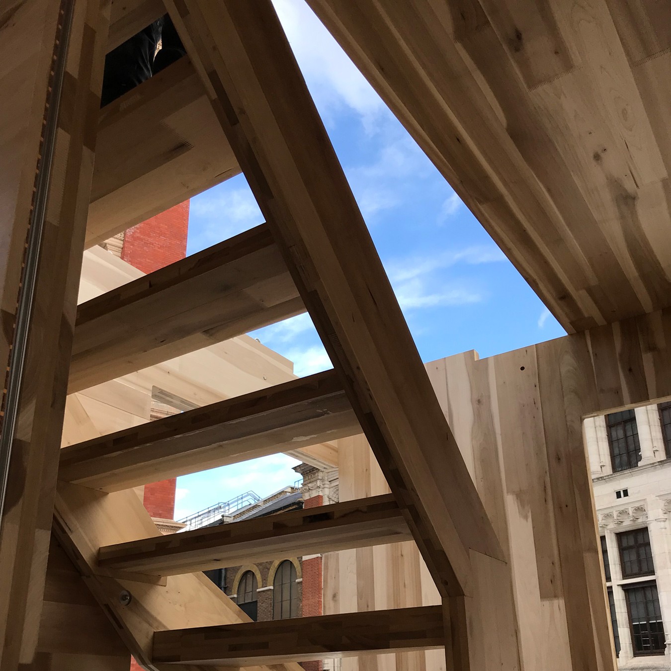 Assembly of our cross-laminated timber pavillion has started at the V&A Sackler courtyard! Designed in collaboration with AHEC and ARUP the pavillion is part of the London Design Festival 2018.