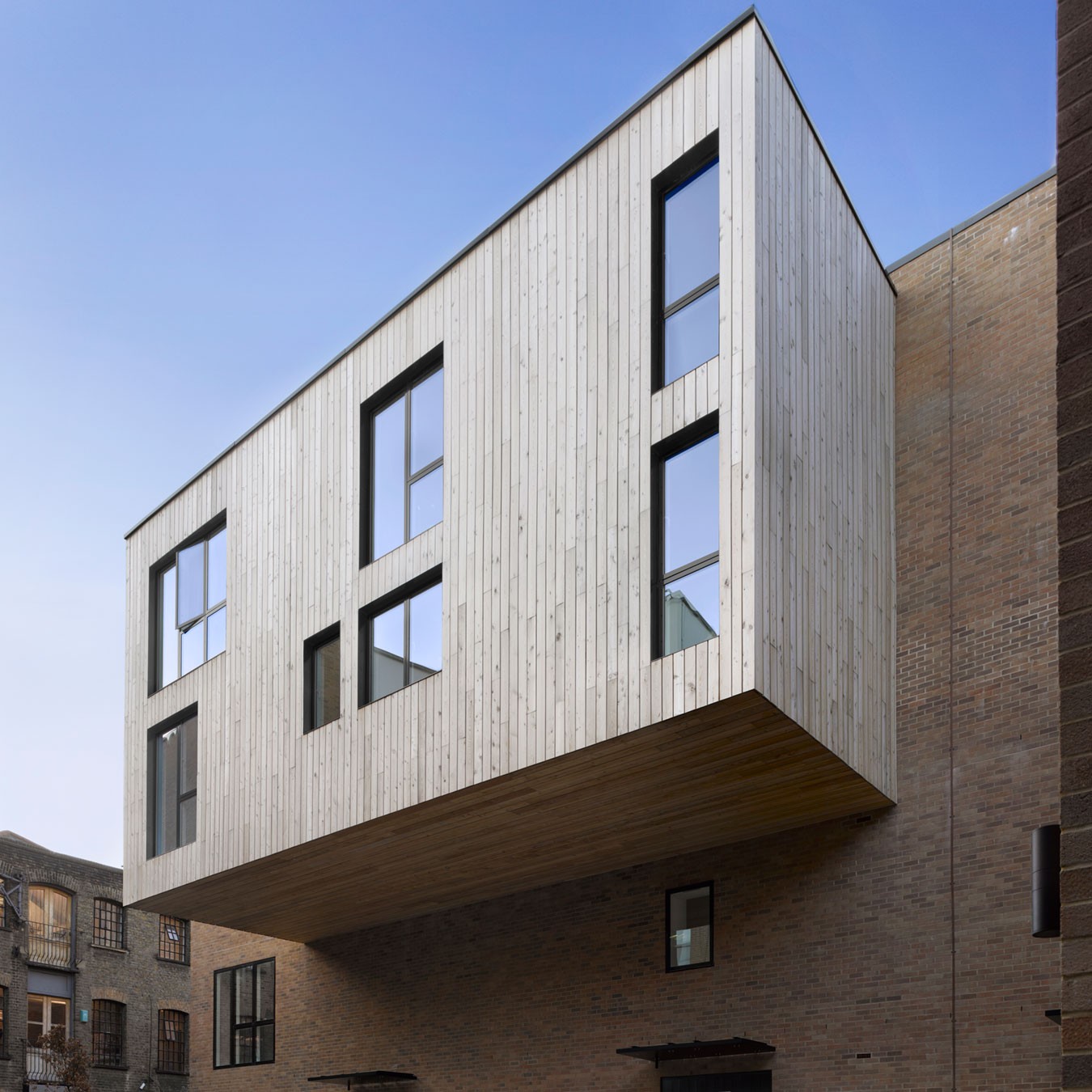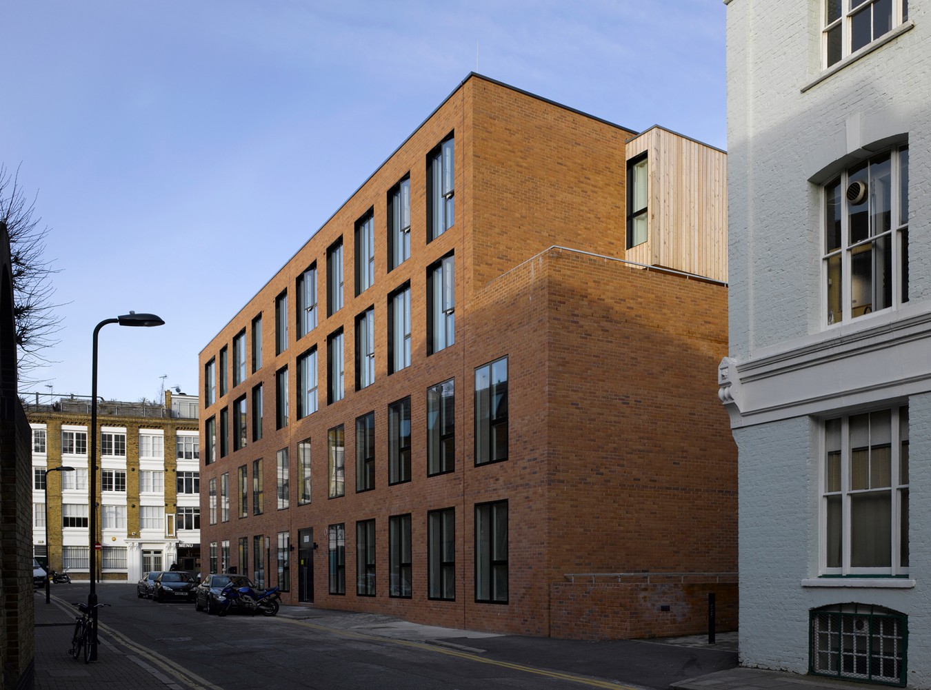 This modern mixed use building in the heart of the South Shoreditch Conservation Area is based on the dimensions of the local Victorian warehouses, restoring the scale of the streetscape to the previously unoccupied site.