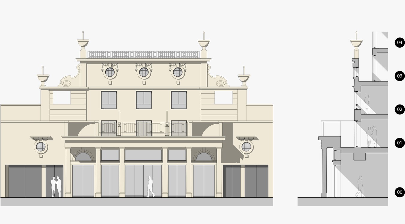 Following close consultation with the local community, and planners, the scheme combines the reconstruction of the original 1914 Gaumont façade with the construction of a contemporary black-brick, green-roofed building.