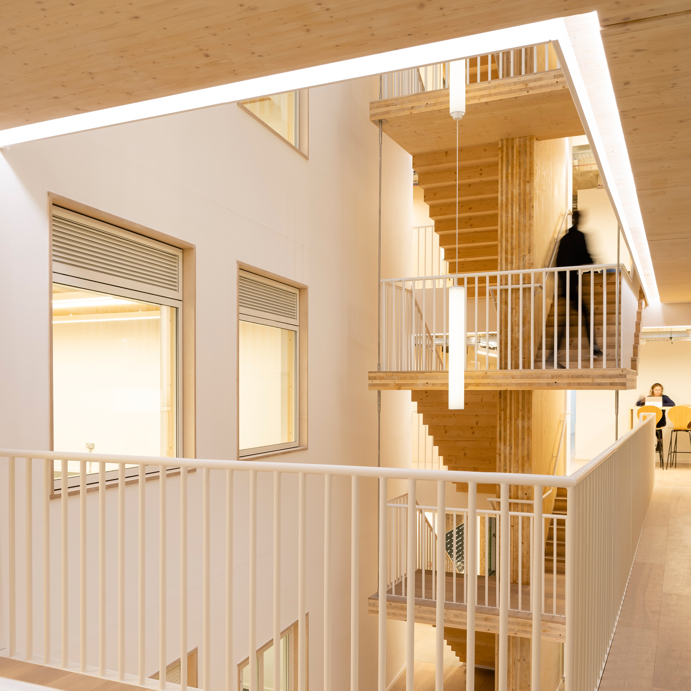 The building has a flexible internal layout to accommodate different sized organisations, and a main atrium at its centre to enhance its networking community. The atrium’s timber-structure and lime render optimise lightness, spaciousness and breathability, while its curtain walling further reduces the building’s carbon footprint.