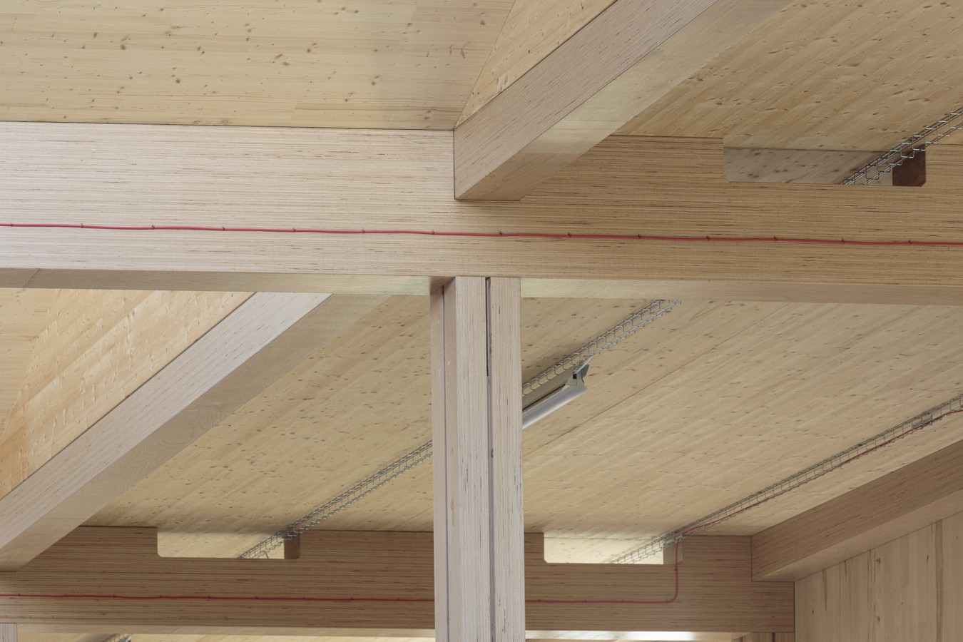 The first building in the UK to be made entirely of LVL, this high performance engineered hardwood permits beams and columns to have smaller cross sections than softwood glulam, thereby offering greater elegance to the timber structure.